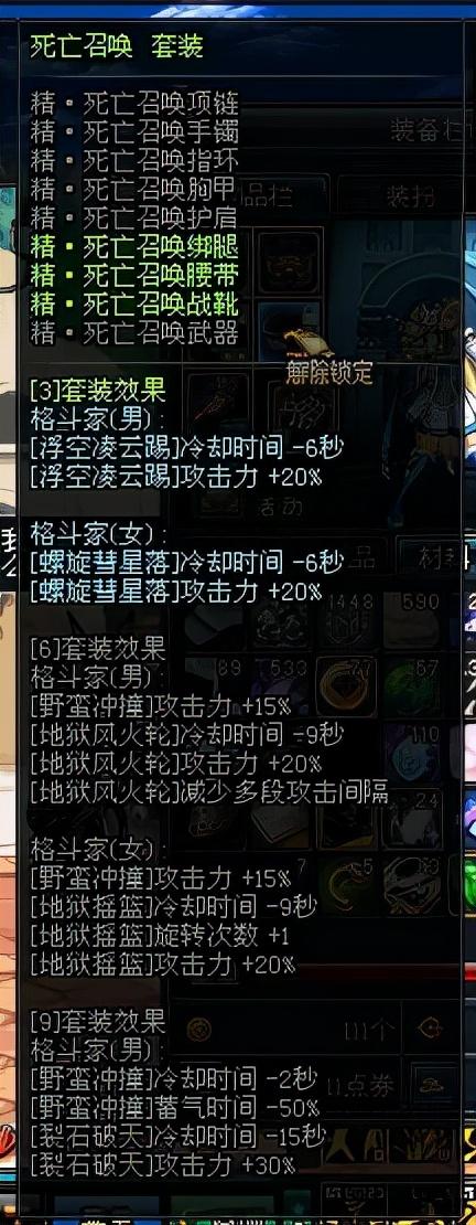 感觉男女散打的异界套都不特别强,当时也就死亡之舞还不错了,死亡之舞套只要是女散打带,升龙拳CD的缩减虽然提高了技能的使用频率,6件套加成核心技能闪电之舞,收益极高,而且如果电光火石之拳或小霸王-其乐无穷武器能够玩的飞起!不过想玩寸闪流的现在100版本更爽,成型后2秒一个寸闪,一直嘿呦~普利!