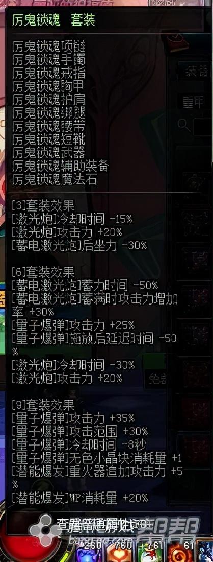 这套装备不论是男大枪还是女大枪都是适用的,激光炮的攻击力以及攻击范围增加对于搬砖来说是非常有效的。进图1个激光炮,一条路上基本不会剩下怪物了。本身激光炮因为是直线攻击,所以存在一定缺陷,但是攻击范围的增加可以说是弥补了这个缺憾。
