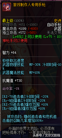 无轩之黄金手炮: 属性指令发动后,使队员进入2秒无敌状态。属性方面与黄金棍一样,我漫游就留了一把专门用来单刷时抵消哈布的火罩。然后黄金炮对大枪来说,在输出方面的可以算一把勉强能用的武器,在自己输出的同时也能为队友加点伤害,不过也只能作为过渡武器使用。