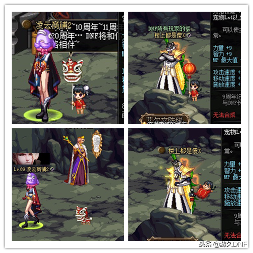非常有国服特色的宠物,分别是8周年和9周年活动获得的宠物,很有节日气氛,动画效果也很不错,节日喜庆的灯笼和舞狮动作也为宠物增色不少,如果可以搭配节日喜庆风格的时装必然是街头一道靓丽的风景。