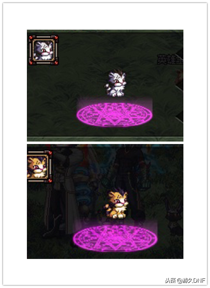 曾经的开盒子有几率获得的宠物,DNF早期几乎都是这种小巧玲珑的宠物,也没有什么属性逆天的宠物,可爱虎/淘气虎凭借其迷人的萌宠外形,让无数大佬为了它氪金开盒子,当年带着它站街还是蛮拉风的。
