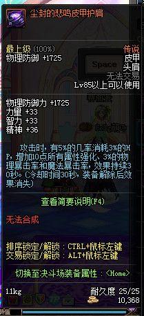 护肩:攻击时,有5%几率消耗3%的HP,增加10点全属性强化、3%的双暴,持续30s,CD30s,解除装备后失效