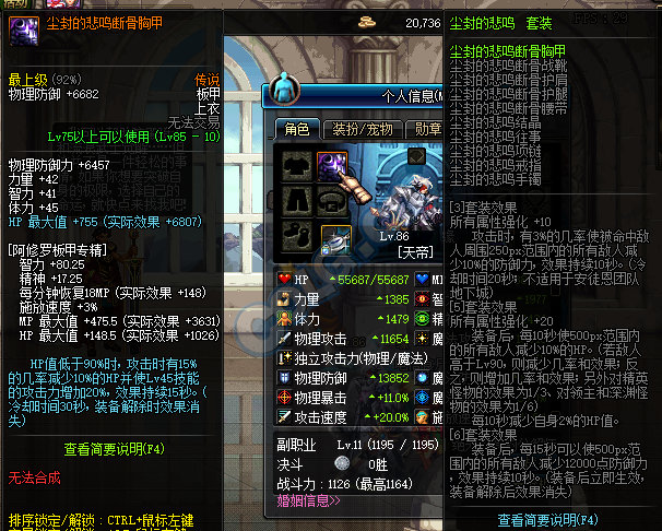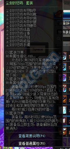 悲鸣套单件部位的属性其实比较普通,防具部位的肩腰鞋 均只加成少量的属强和暴击率;上衣 虽然对45级技能有着20%技能攻击力的提升,但在这种全技能输出的版本,上衣的效果其实没有太多的实用价值;而悲鸣套首饰以及特殊装备部位的属性也没有什么亮点,所以仅从单件的属性来看,我们很难把这套装备与“辅助”结合起来,有时候甚至连它的套装效果都懒得看一眼。也正为这样,悲鸣套强大辅助效果往往会被大多数玩家所忽略。