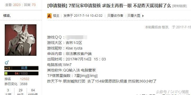DNF玩家被无限制裁360,装备以解锁,三天后直播删号