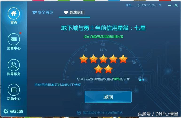 为了表明自己并未篡改客户端,从未展示自己的信誉等级,游戏信誉七星,信誉等级比较高,国服应该很少。
