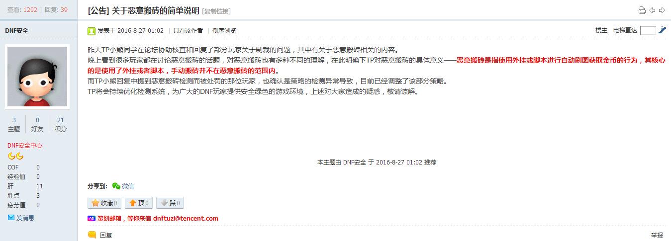 TP将会持续优化检测系统,为广大的DNF玩家提供安全绿色的游戏环境,上述对大家造成的疑惑,敬请谅解。
