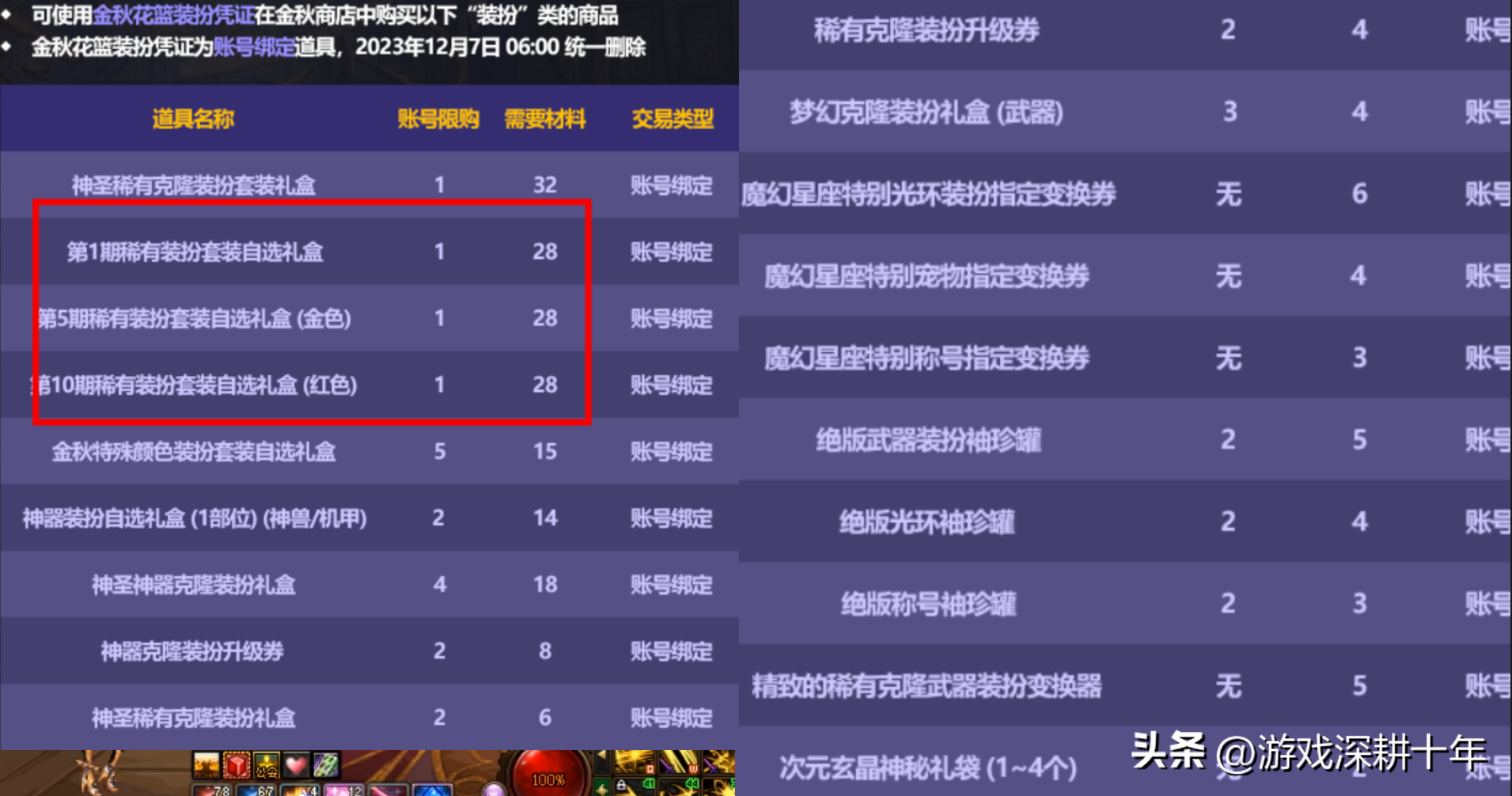 而再往上,最接近的是8套和9套,10虽然多了一个特别光环,但并不能交易,回血率几乎没提升,不过拉满10套可以换12增幅券,这就是土豪大佬们的操作了。