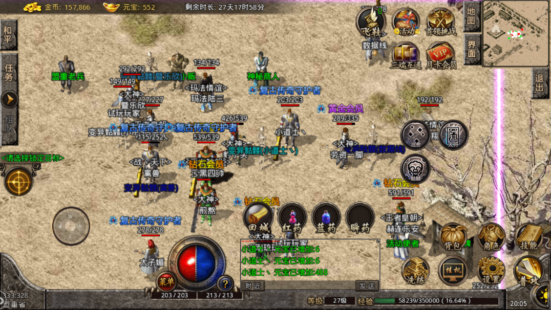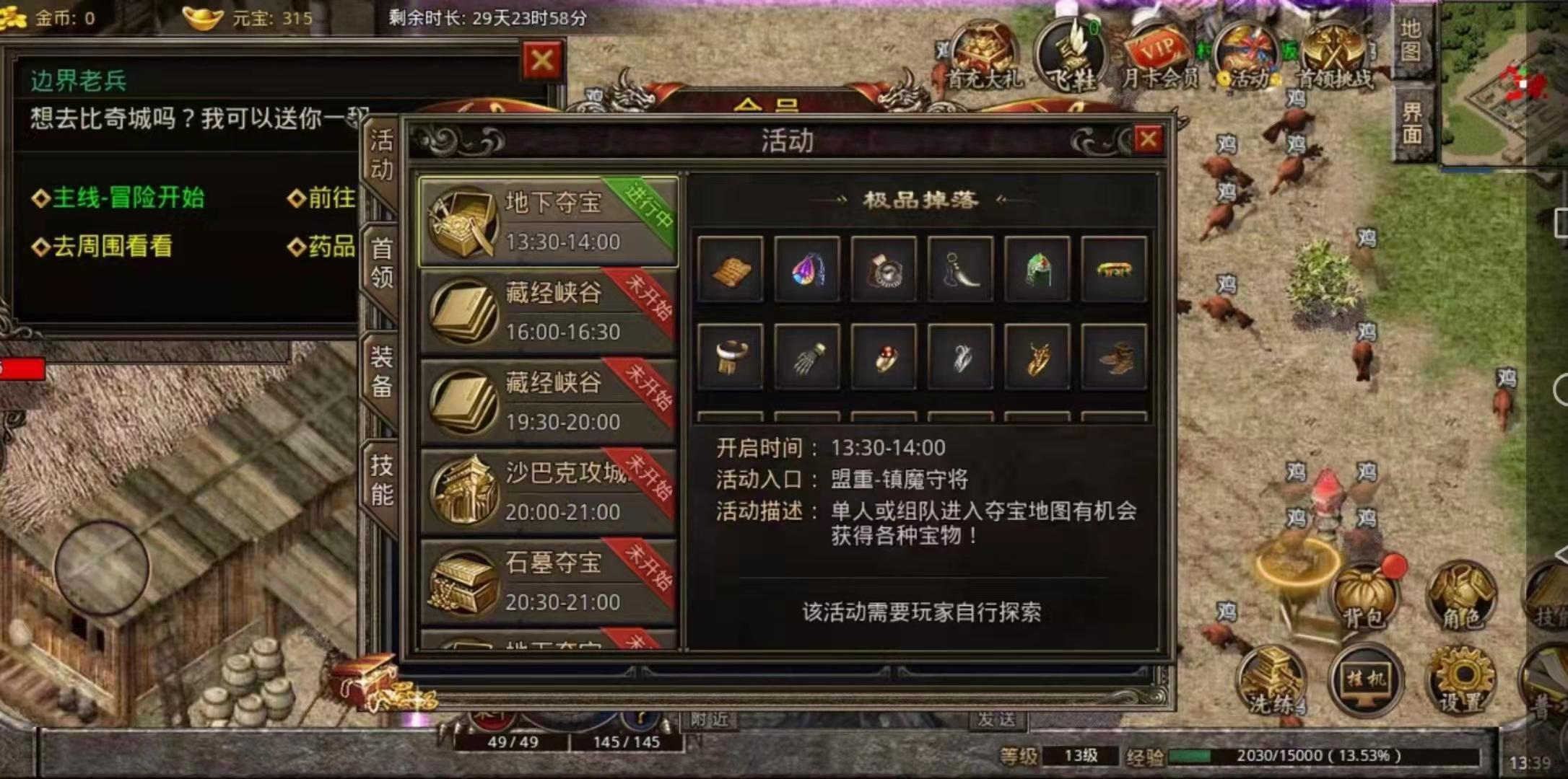 3、决战沙城万人争霸,每天都会有很多人在线,你可以挂机练技能也可以进行副本扫荡!