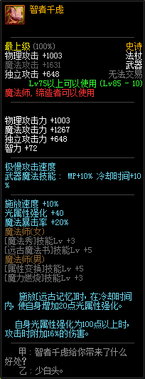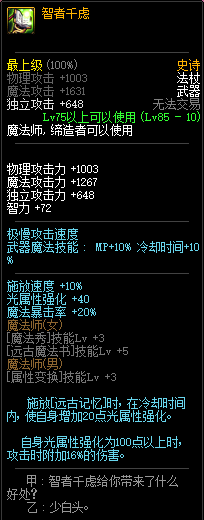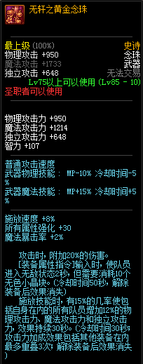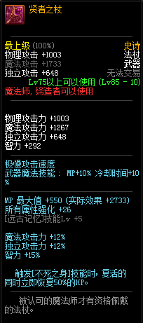 逝魔消耗MP增加的属性都加强了不少,但是BUFF触发的智力降了很多(单刷的情况下),不过加了这么多BUFF少点智力也就算了~反正组队肯定更强了~