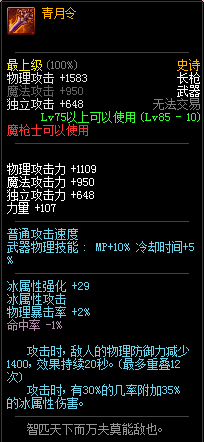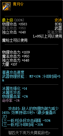 青月令让烽火+青月党直接仆街,不过30%机率附加30%冰伤算是加强吧~