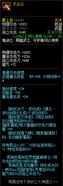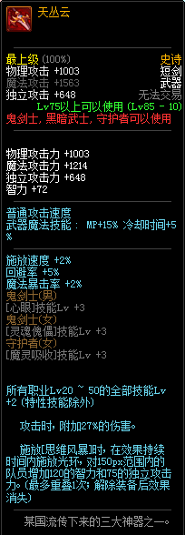 天丛是实在是棒,20~50技能,无条件附加27%,可惜只加暗帝瞎子混沌的被觉,就算是这样其它人用也是非常吊爆的武器...