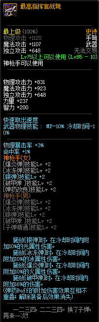 最高指挥官直接就附加22%伤害了,没有以前那样对应属性弹附加,还增加了6%面板,见人见智的改动吧...