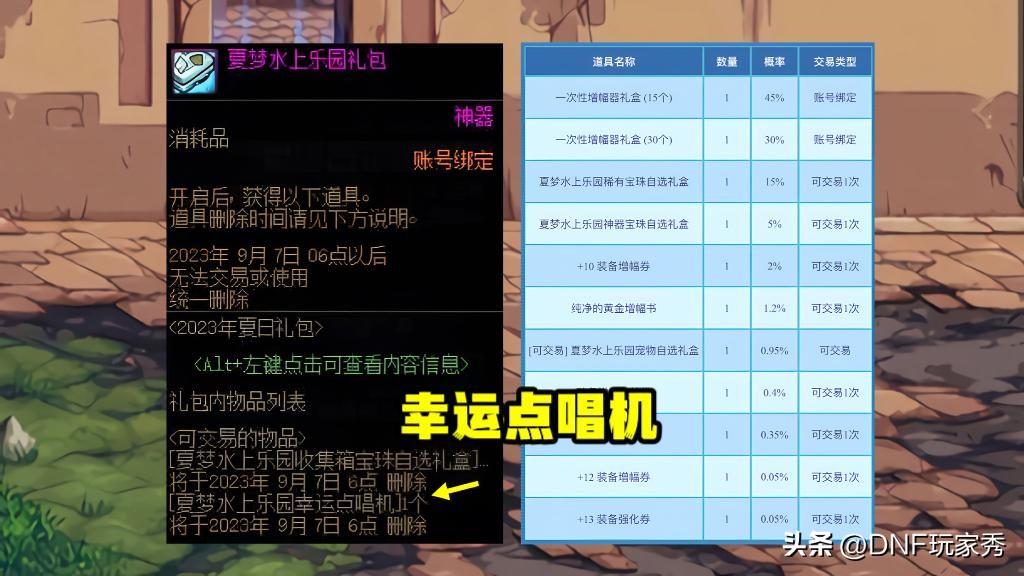 DNF夏日礼包中的幸运点唱机,开出极品道具的几率如何?秀儿给兄弟们开100个,试一试水,看能够赚多少钱? #DNF十五周年#