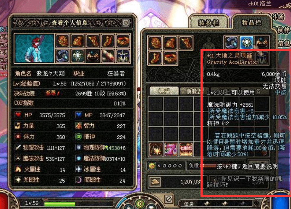 然而,还有一款装备以昂贵的方式收费,实际上按次数来计费,这无疑是史上最令人费钱的史诗装备之一。这个神奇的装备就是20级的史诗项链,名为大地之灵项链。它的属性非常特别,可以在跳跃时按下空格键迅速降落。虽然这个属性看起来有些鸡肋,但每次使用都会收费100金币。在PK场上,一次简单的对战可能需要跳数十次,这就会让你付出大量金币。对于那些习惯了在地图上跳跃的玩家,情况更加糟糕,他们赚到的金币很快就被这件装备消耗殆尽。