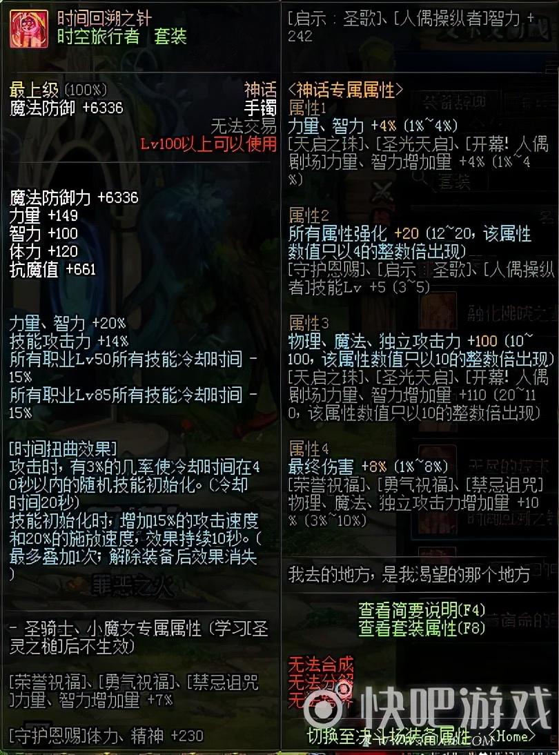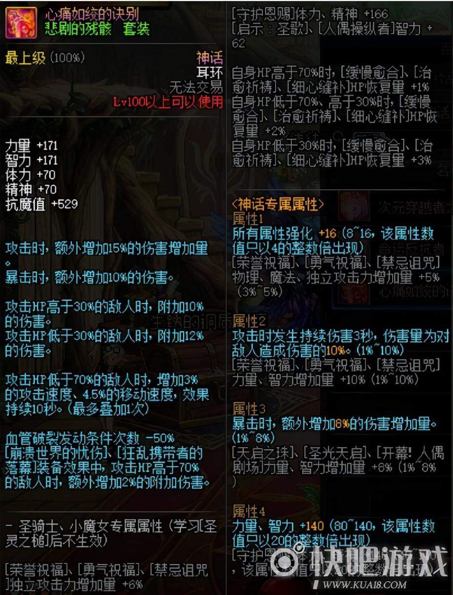 这件神话装备的神话属性比较特殊,攻击是有让40秒内一个技能初始化。勇士们可以选择高连击,同时某个小技能非常优质(例如弹药、剑魂等),通过本身装备提供的技能冷却和触发装备效果,到达某些技能几秒一次。