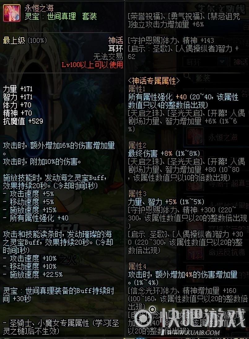 耳环部位,只推荐“堕落的灵魂”耳环,韩服正式改版,在原有的“无色技能+8%技能攻击力”的基础上,新增了“无色技能CD-10%”的属性,未来机械战神版本必选。