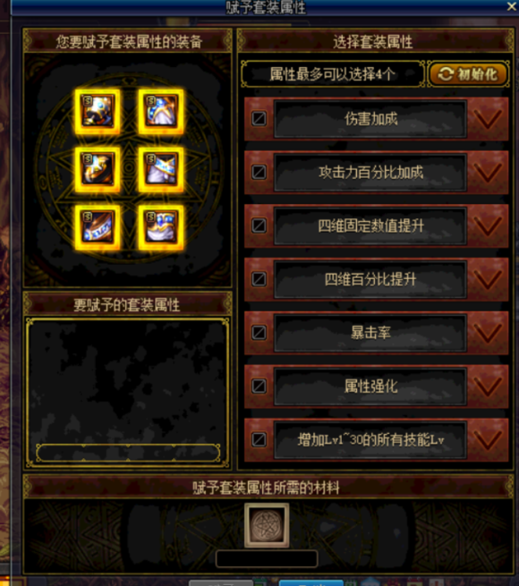 艾肯的套装属性主要包括伤害加成(即黄白爆三选一)、百分比攻击力(物攻独立、魔攻独立)、百分比四维、固定四维(均为单一四维提升)、暴击率、属性强化、1-30所有技能Lv提升