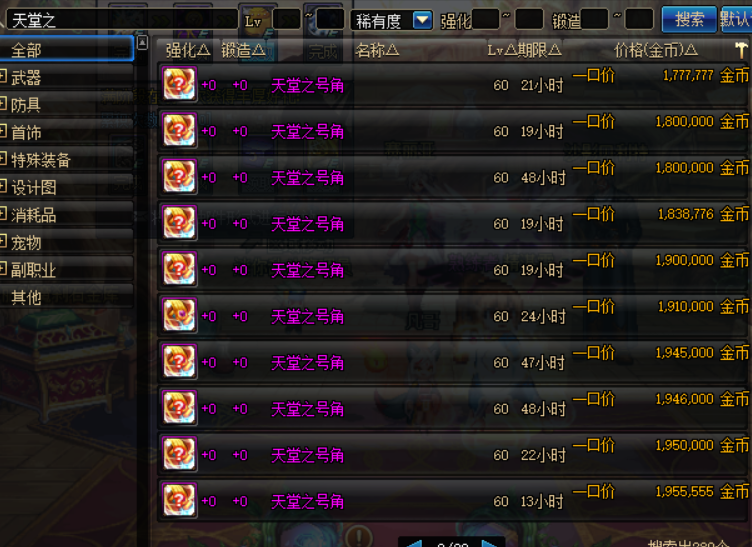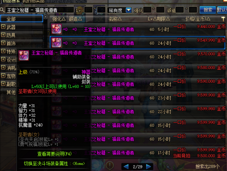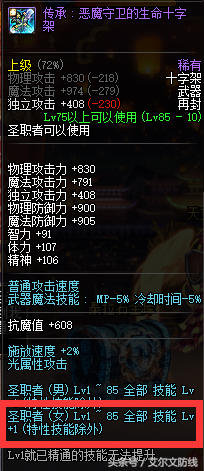 武器选择85级圣物武器即可,有1级一觉等级提升,同时还有不少的智力量增加。通过拍卖行直接购买即可获取,而且价格也只有在400万左右。