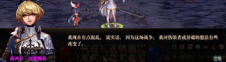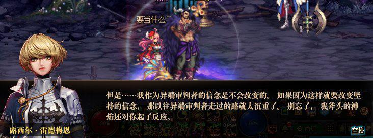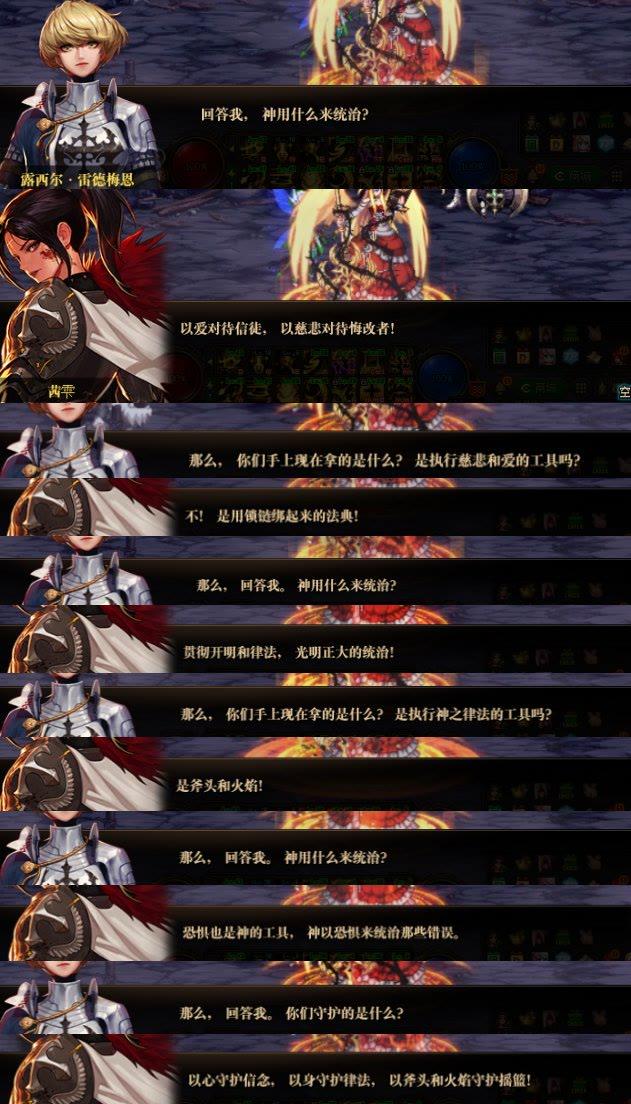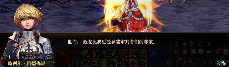 逐渐崩坏的“颜艺”露西尔+异端审判者=当场传教游戏中使用异端审判者角色与露西尔对话时,露西尔会带着你重新温习一遍异端审判者的教诲。