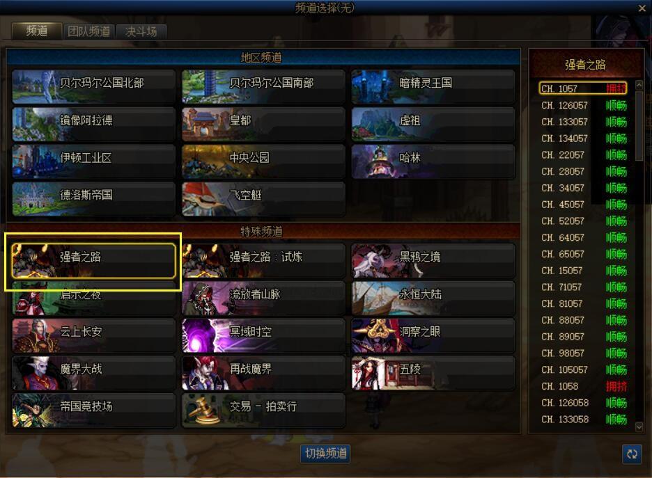 在赛丽亚旅馆种完成强者之路前置任务后,可从暂驻Npc[时空之法米利尔]处直接进入活动频道强者之路,或从频道选择区进入强者之路频道。