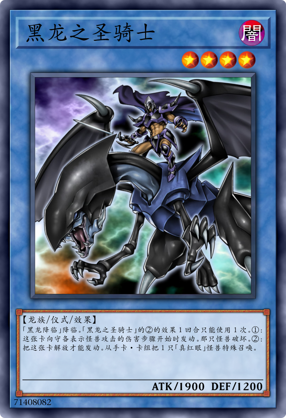 【黑龙之圣骑士】说是黑龙之圣骑士,但是从卡图上来看这条黑龙比起真红眼黑龙,倒是更像是青眼白龙。真的是肉眼可见的敷衍。大概是因为原作高桥和希先生喜欢黑魔术师,而游戏王的发行商K社喜欢青眼白龙,这样真红眼黑龙和城之内就变成了没人疼没人爱的孩子,以至于在很长一段时间内真红眼都被称为“咸鱼眼”。
