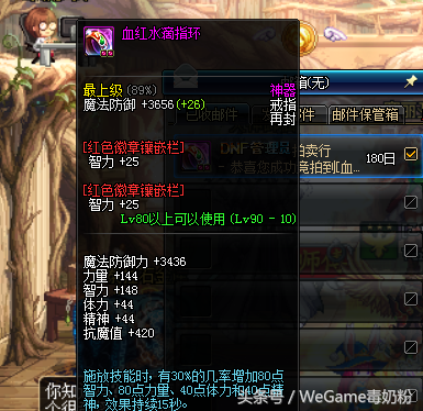 由于该玩家4年前没有使用,没想到90版本派上了用场,于是他拍卖行500多W购买了带25智力灿烂的血红水滴戒指,然后2选1取下了其中一个,500W和一个灿烂回收箱16块就换了一个25智力的灿烂徽章,这可比天空分解便宜太多了。这也说明当年DNF道具是多么实用,不过前几年梦想白金徽章也就300W。时过境迁,当年产出过剩的道具都成了天价了。可是,该玩家取下来的徽章竟然是过期的。