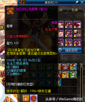 没想到过期徽章重上后还是没删除,于是该玩家开孔尝试能不能用,没想仍然能再打到装备上!DNF果然是神奇的BUG数不胜数,BUG还相生相克啊,过期徽章能用回收箱取下来,本想找策划的麻烦,没想到国服DNF专属特色,过期徽章照样能使用!