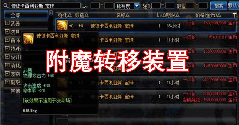 众所周知,在DNF中打造装备非常的困难,特别是附魔属性,花大价钱打造的完美附魔装备,一旦推出新版本,出现更强力的装备之后就面临着淘汰的处境,然而附魔属性就这样随着装备丢失,又要重新附魔。