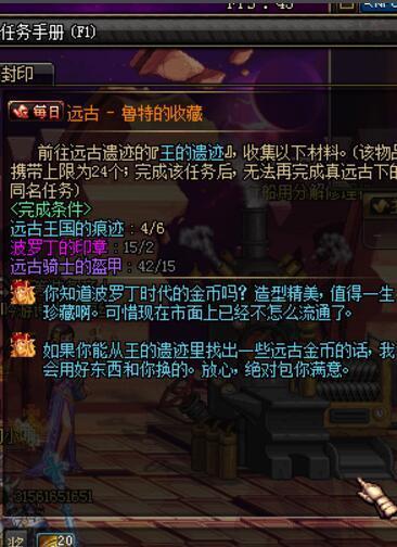 每日任务:如名所示,每天只能接受一次,通过完成这种任务,可以得到某些可交易的材料或可用于换神器装备的不可交易的任务材料。