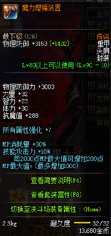 护肩是所有拍卖行战士必选的,这个就是增加10%技能攻击力的魔力增幅装置,价格也不贵,如果大家装备中缺少护肩,也可以用这个装备轻松过渡。