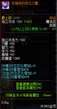 现在邪念之瞳的价格很低了,为了达到最大的伤害可以购买一件增加8级的中毒状态,并且中毒伤害增加40%,如果不想花钱就用瘟疫之源浓缩石。