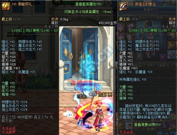 DNF布甲B圣耀法杖下,海伯伦耳环对比英雄王