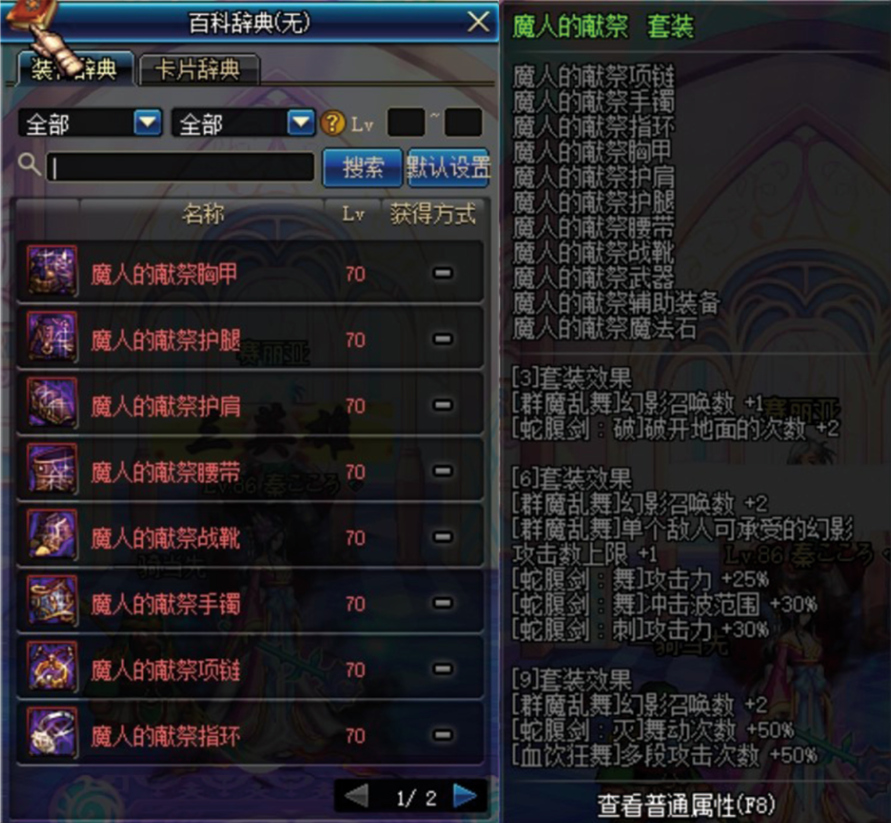 点评:剑魔这套异界的输出就是群魔乱舞,这套在低级图的表现不咋样,但是到天界以上的图,怪物多起来时,那真的是特别的好用,一个群魔乱舞能直接把BOSS带走,BOSS图之前的房间清小怪的效率也很高,毕竟这个技能可是有着23W百分比的超强技能啊。
