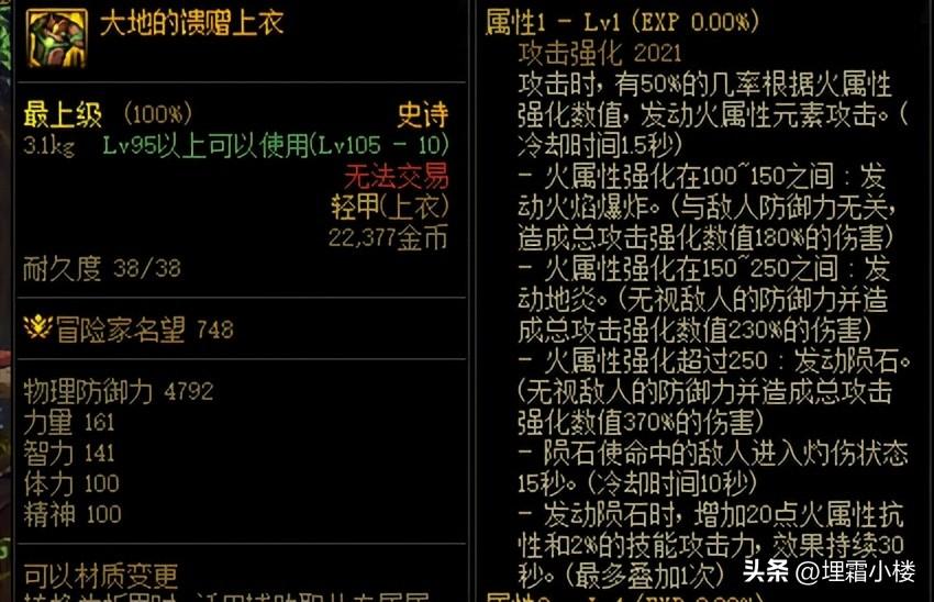 魔法石部位选择虚伪之石提升属强附魔效果,魔法石部位选择全属强附魔,辅助装备可以选择挖掘之王的部件打连击,耳环选择黄昏圣堂耳环提升属强。