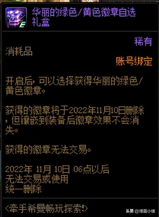 牵手希曼畅玩探索活动当中可以兑换到4个华丽的黄色/绿色徽章,可以拿给小号使用。探索等级到达50级可以获得一个梦想白金徽章礼盒,若大号不需要的话也可以给小号使用。