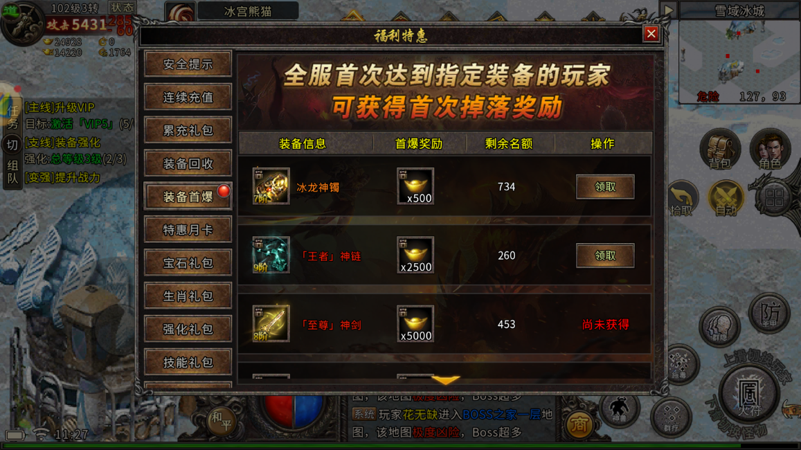 金服首次达到装备的指定玩家可获得首次掉落奖励