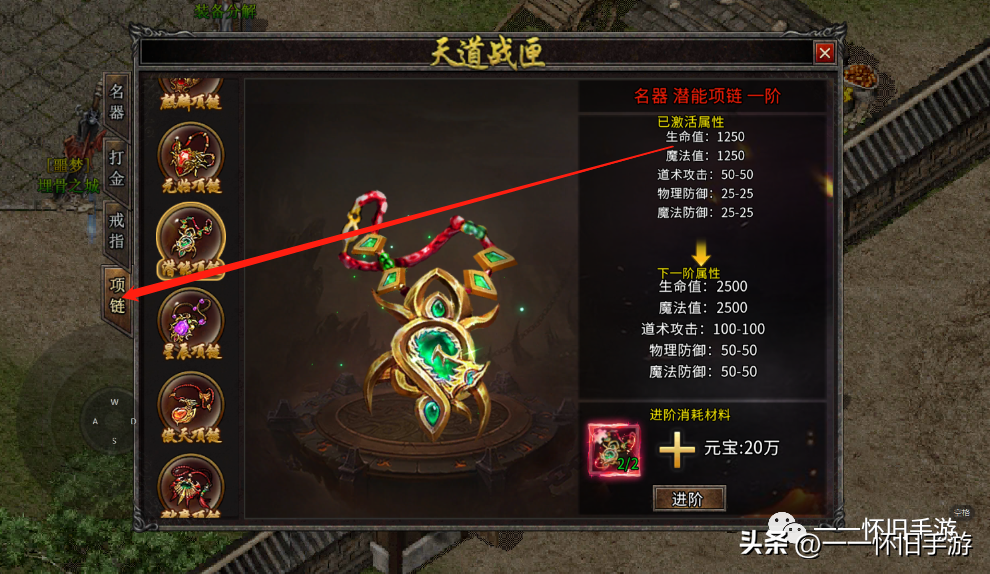 第二个就是通天塔,只要打过十层之后在商城内每天都可以免费领取一个每日礼包,打开必得一个项链碎片,然后在右下角的天道战匣里面激活就可以了,激活只要一个碎片就可以了