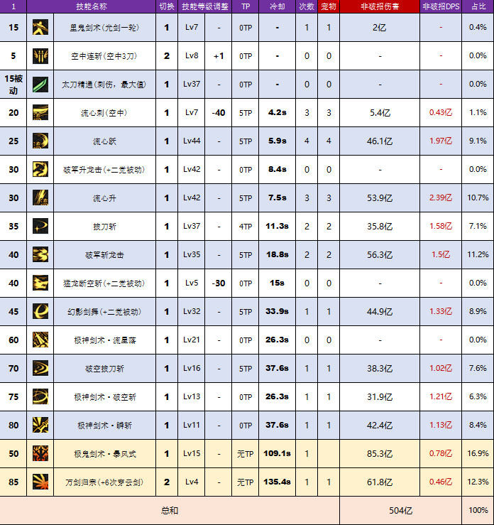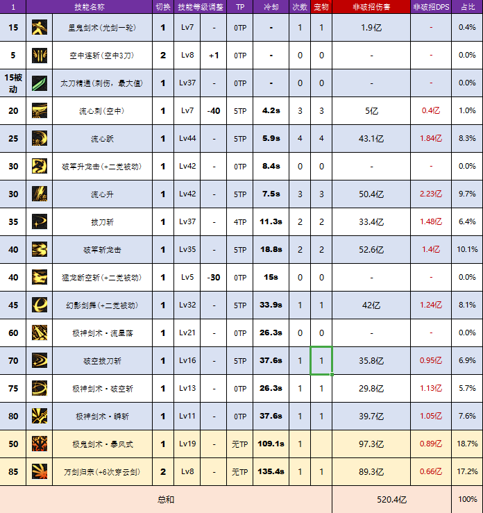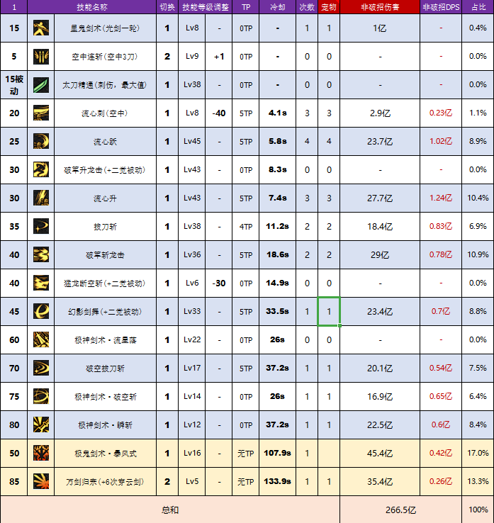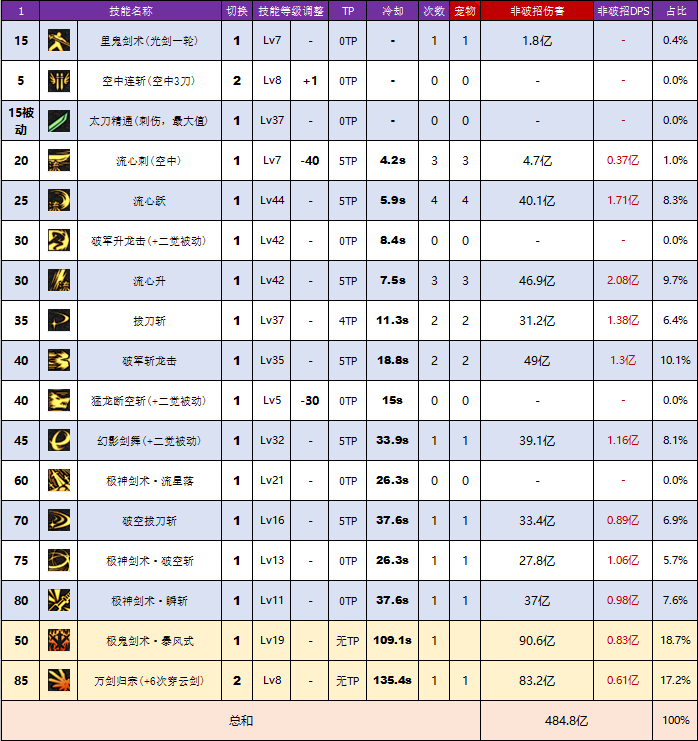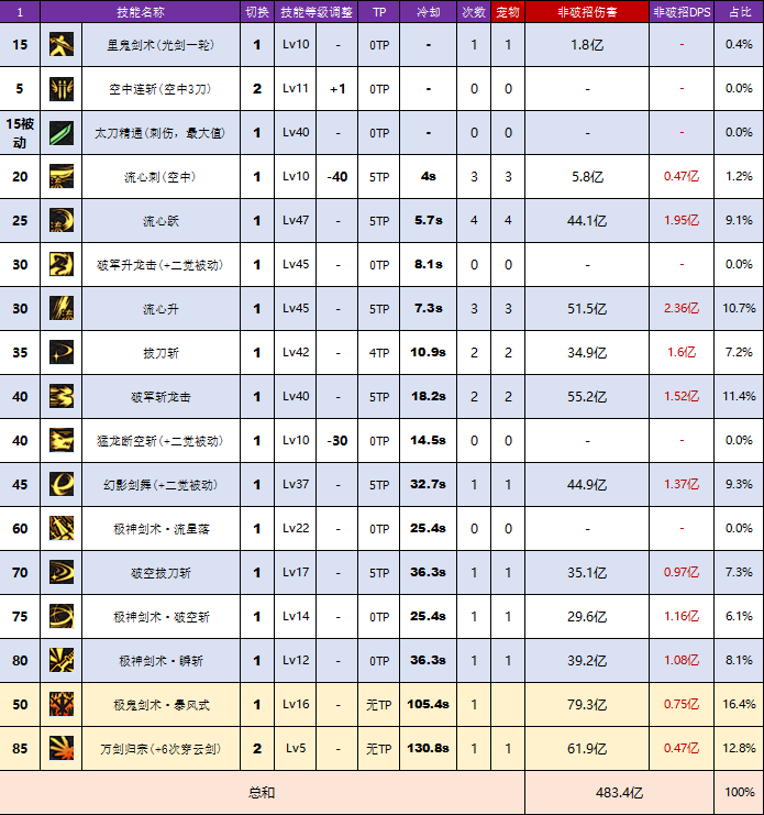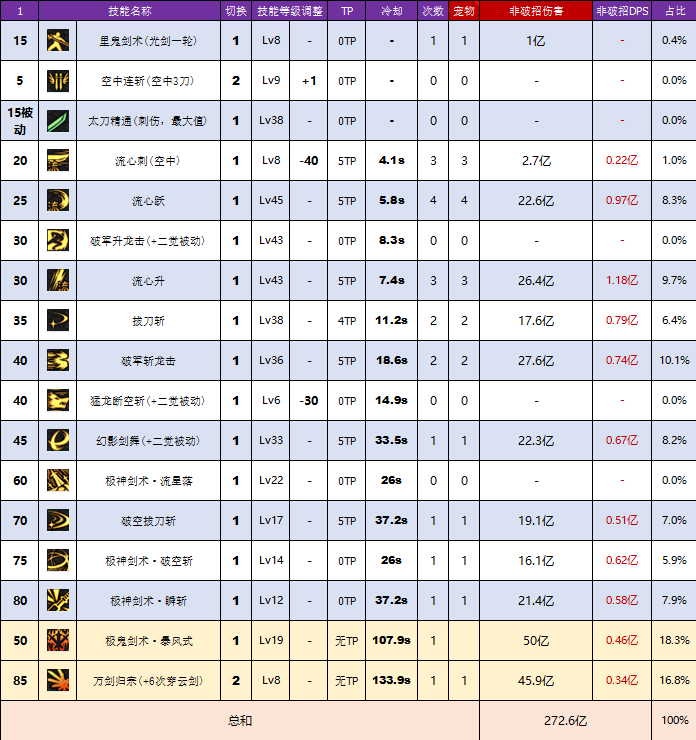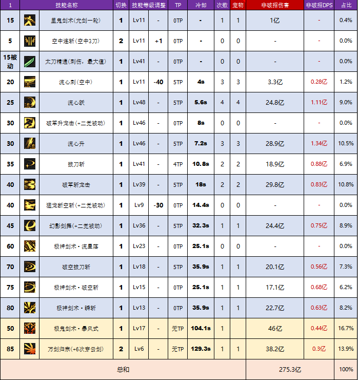 对大多数职业而言,板甲B套仅凭对以上几个技能的加成,并 不足以缩小 它和皮甲轻甲之间的差距,因为50级-85级技能的整体伤害占比太高,而这部分技能正好是板甲B套的短板。