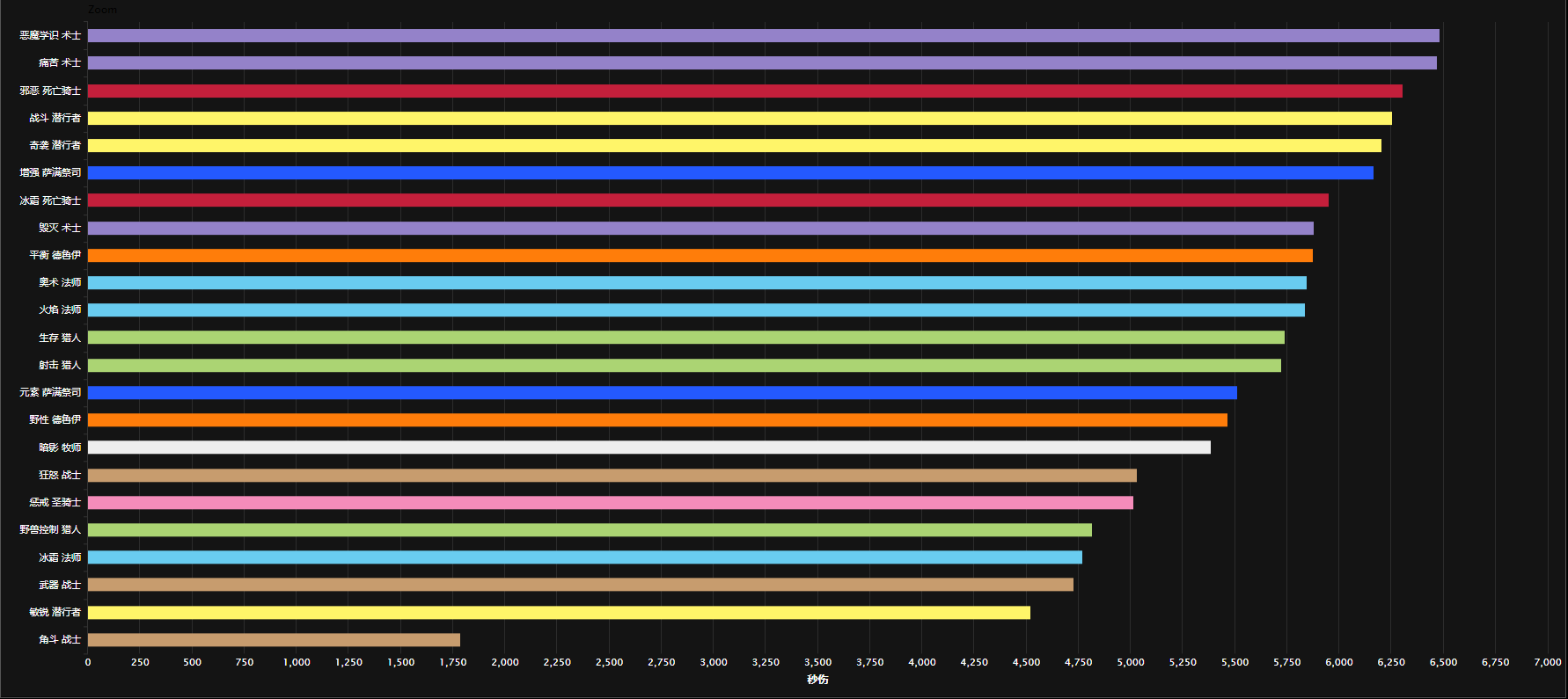 祥子哥也曾查询WCL惩戒骑的数据,大家看上面的图片,惩戒骑和狂暴战的秒伤几乎一致,低于各大热门职业。除去兽王猎、冰法、武器战和敏锐贼,这几个极其冷门职业,狂暴战和惩戒骑可以说是并列倒数第一。