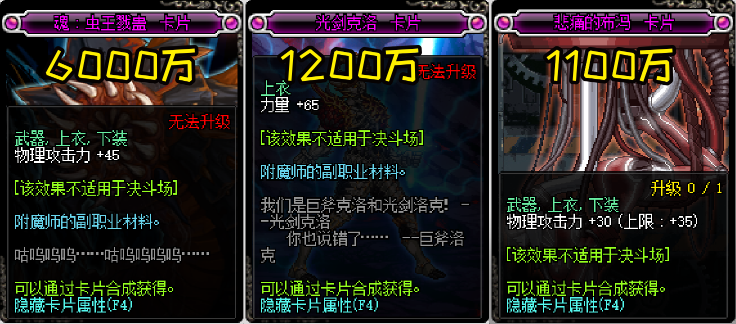 但是百分比职业附魔真的贵呀,魂虫王要6000万,光剑克洛力量才要1200万,但是这样克洛的65点力量提升却和悲痛的布冯差距不大,而价格也是差不多一样,所以百分比职业附魔物攻收益更高,没必要浪费钱去附魔力量
