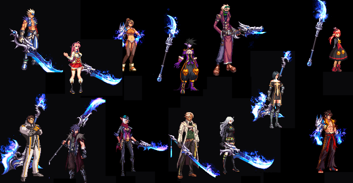 【瓦尔哈拉武器装扮】,20年耕耘礼包产出道具,这套装扮特色鲜明的划分为男鬼剑和女鬼剑,同时武器装扮特色也格外鲜明。