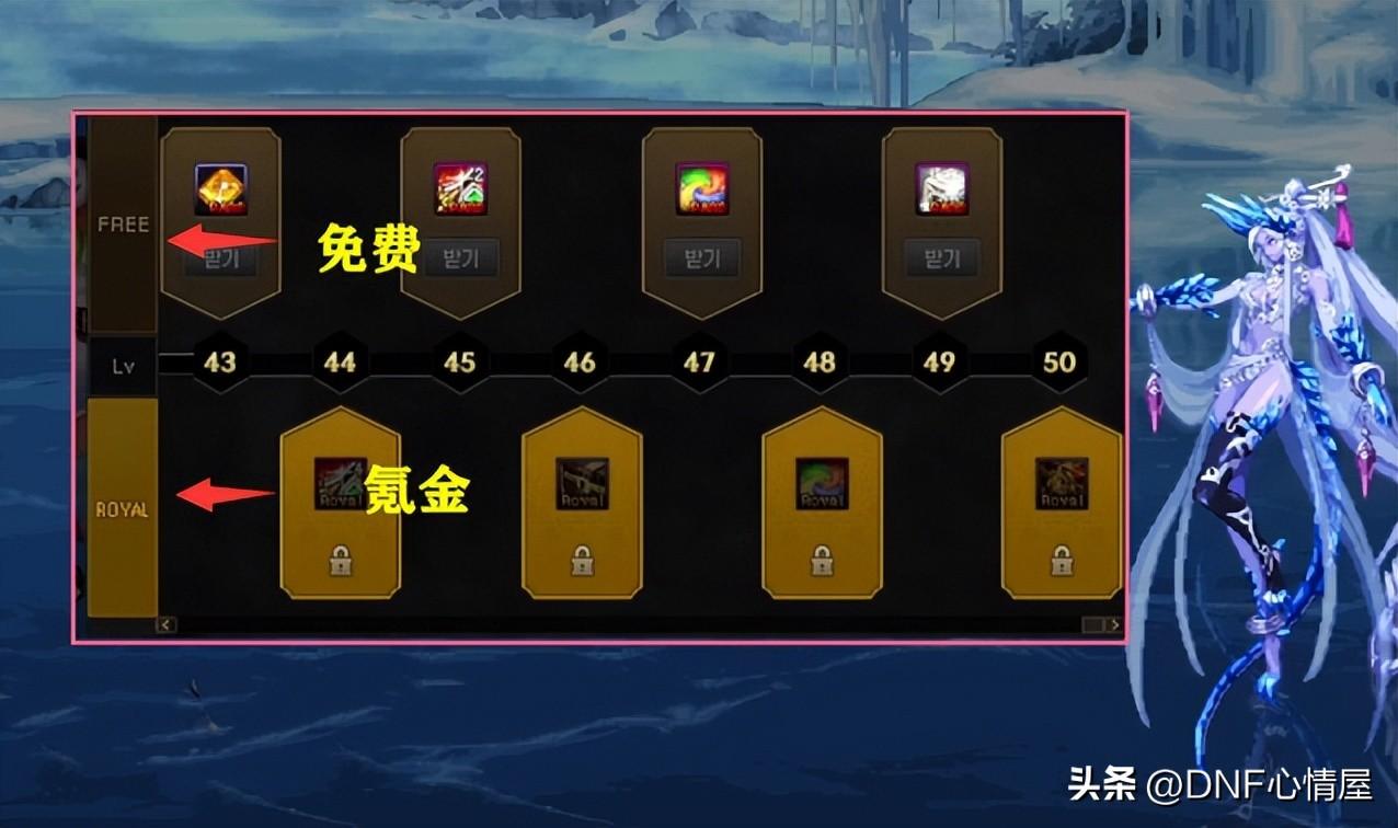 你会发现,韩服的阿拉德探险记,只需要升到50,即可达到满级。国服就不一样,战令等级比较高,达到100的时候,方能解锁最终大奖!不过注意了,两个服务器,都存在“免费”和“氪金”两种方式。
