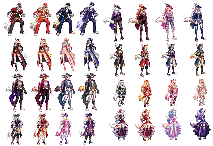 礼包中获得的“猫咪时装”是账绑礼盒,每个职业可以在4种颜色中任选其一,主要黑色、红色、蓝色、以及紫色。