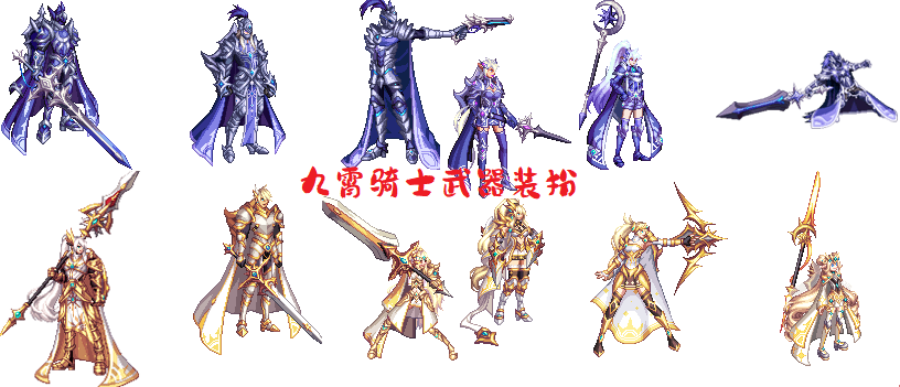 【九霄骑士武器装扮】,22年耕耘礼包产出的道具,有“光”“暗”2种配色可供选择,推荐职业有鬼剑士、圣职者、魔法师、以及魔枪士。
