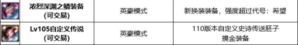 自定义词条的史诗装备是110级装备打造的终极目标,而自定义词条的传说装备是这个目标的基础,后者如果带有顶级词条是可以通过“词条转移系统”转移到自定义史诗上的,价格不菲