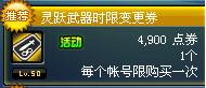 这个武器是有期限的,你想要无期限使用,就得刷图获取灵跃点数领取时限变更券。时限变更券可以用点券购买,点券购买价格为49大洋