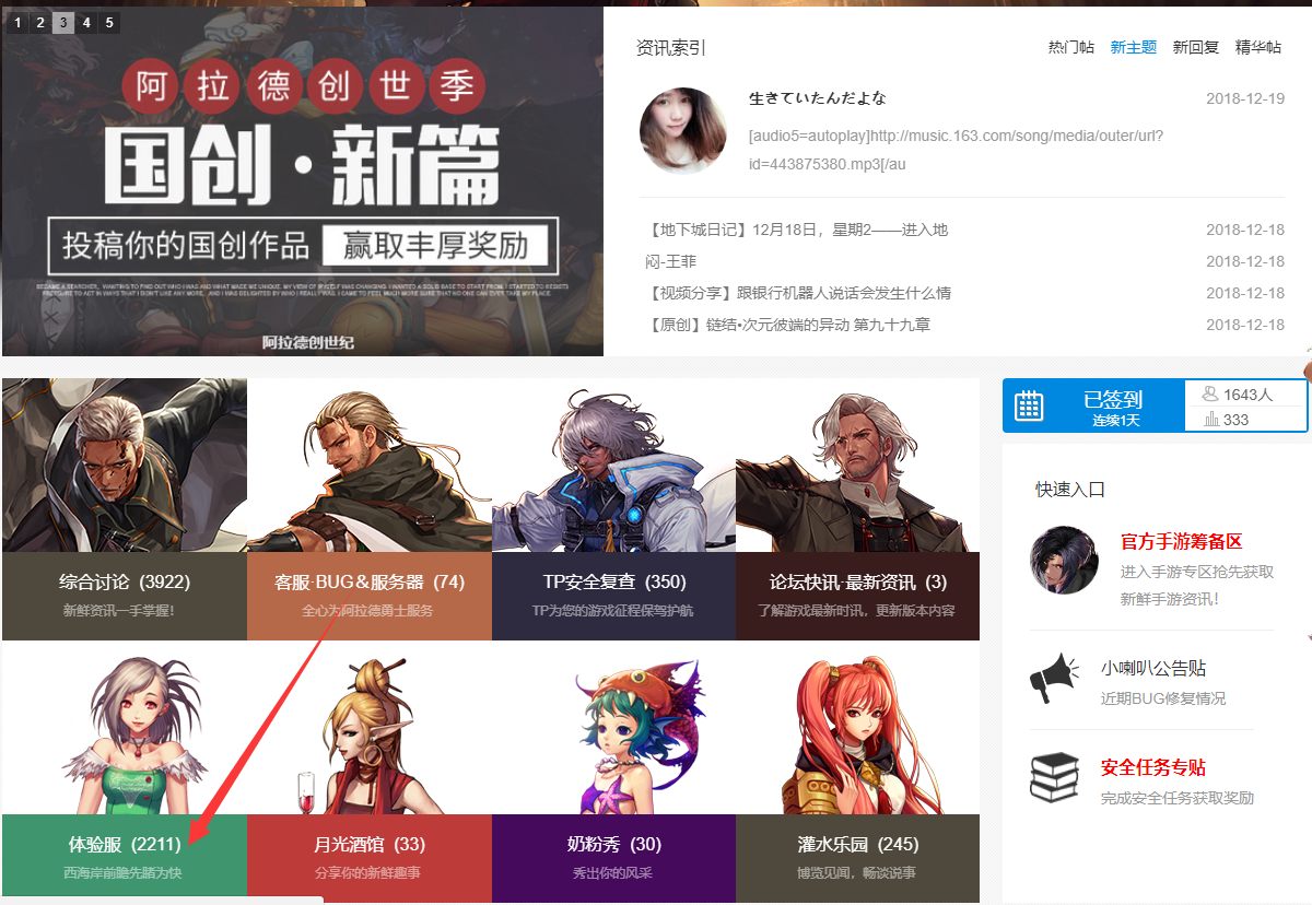 我们在官网首页右上角玩家社区中找到论坛,点击进去就可以,进到主页后我们点击体验服,就可以看到有关体验服的相关活动和内容。