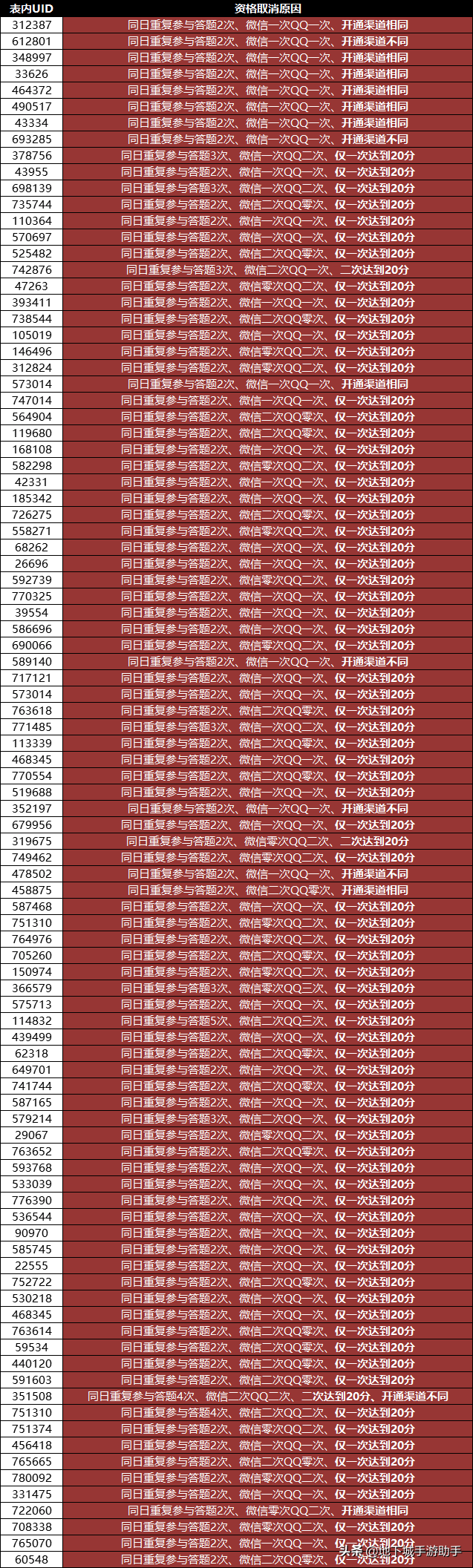 本次论坛答题活动取消资格的玩家名单如下