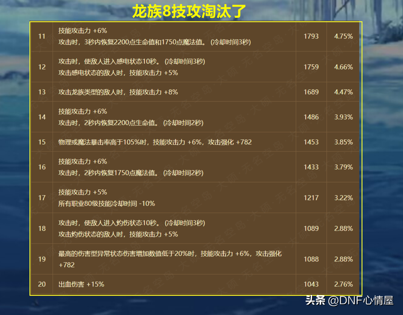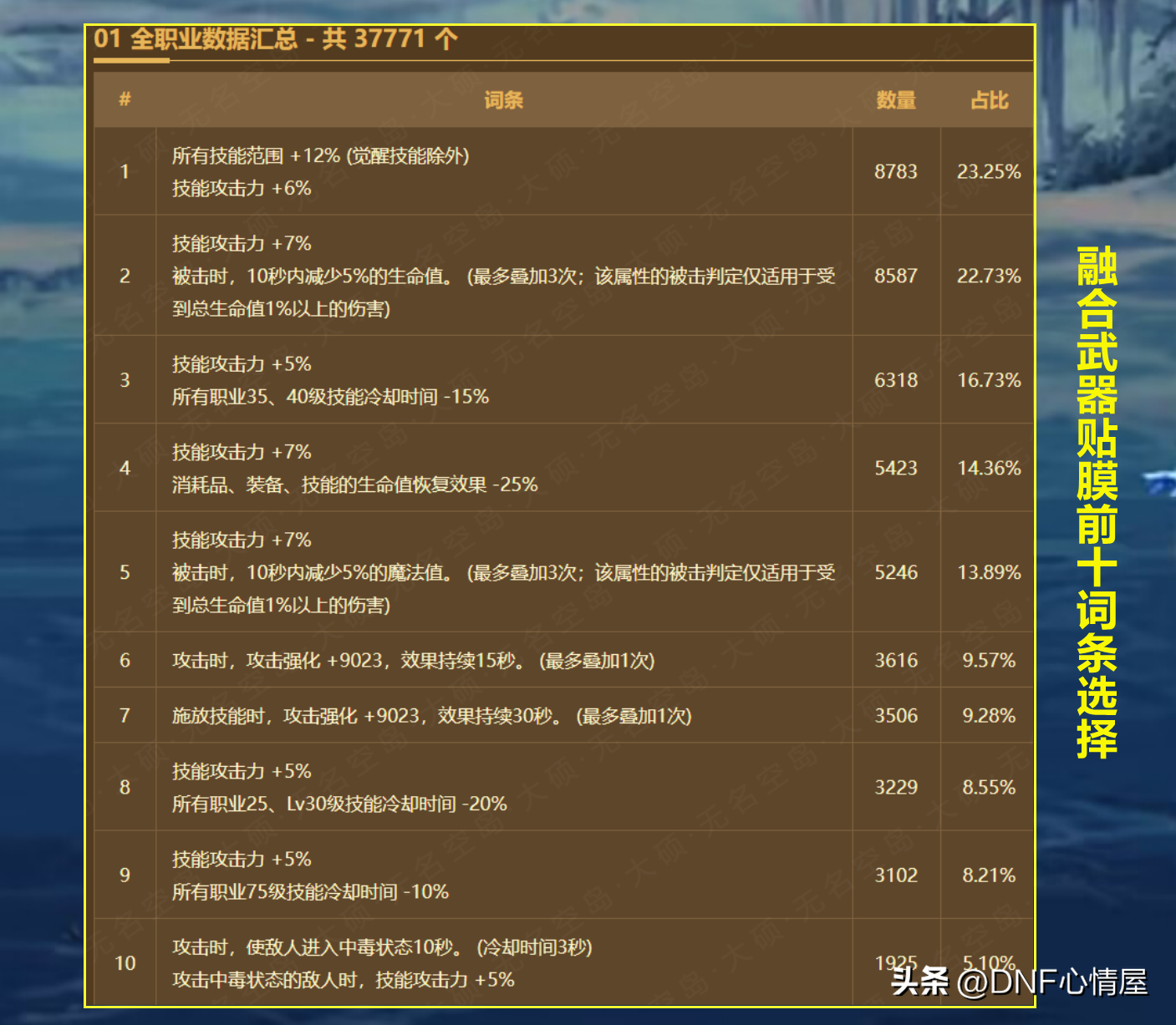 DNF:37W个角色武器贴膜词条汇总!第一名出现了,龙8要被淘汰了