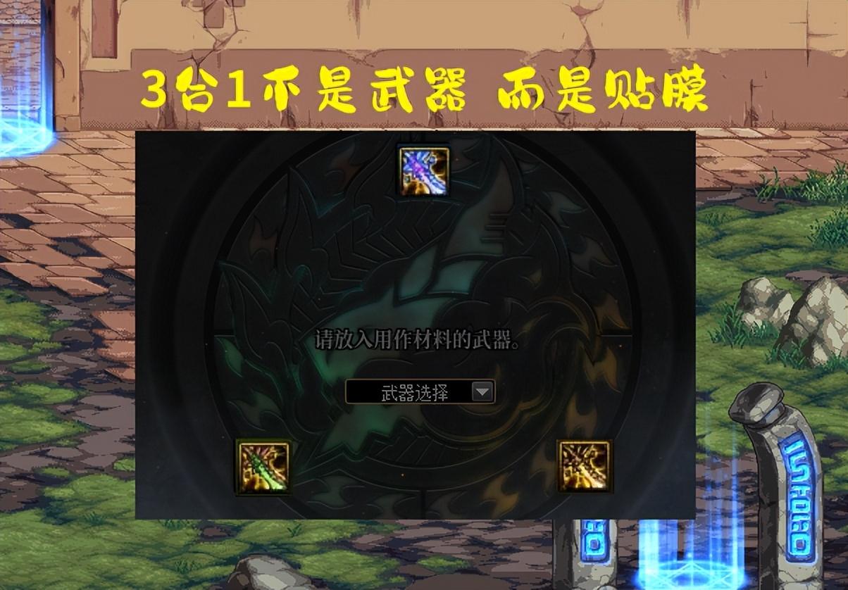 所以,如果你想在邪龙武器上,再贴膜一件巴卡尔武器,那么实际上是需要2把邪龙武器的,一把用于3合1融合,一把用于自己佩戴。